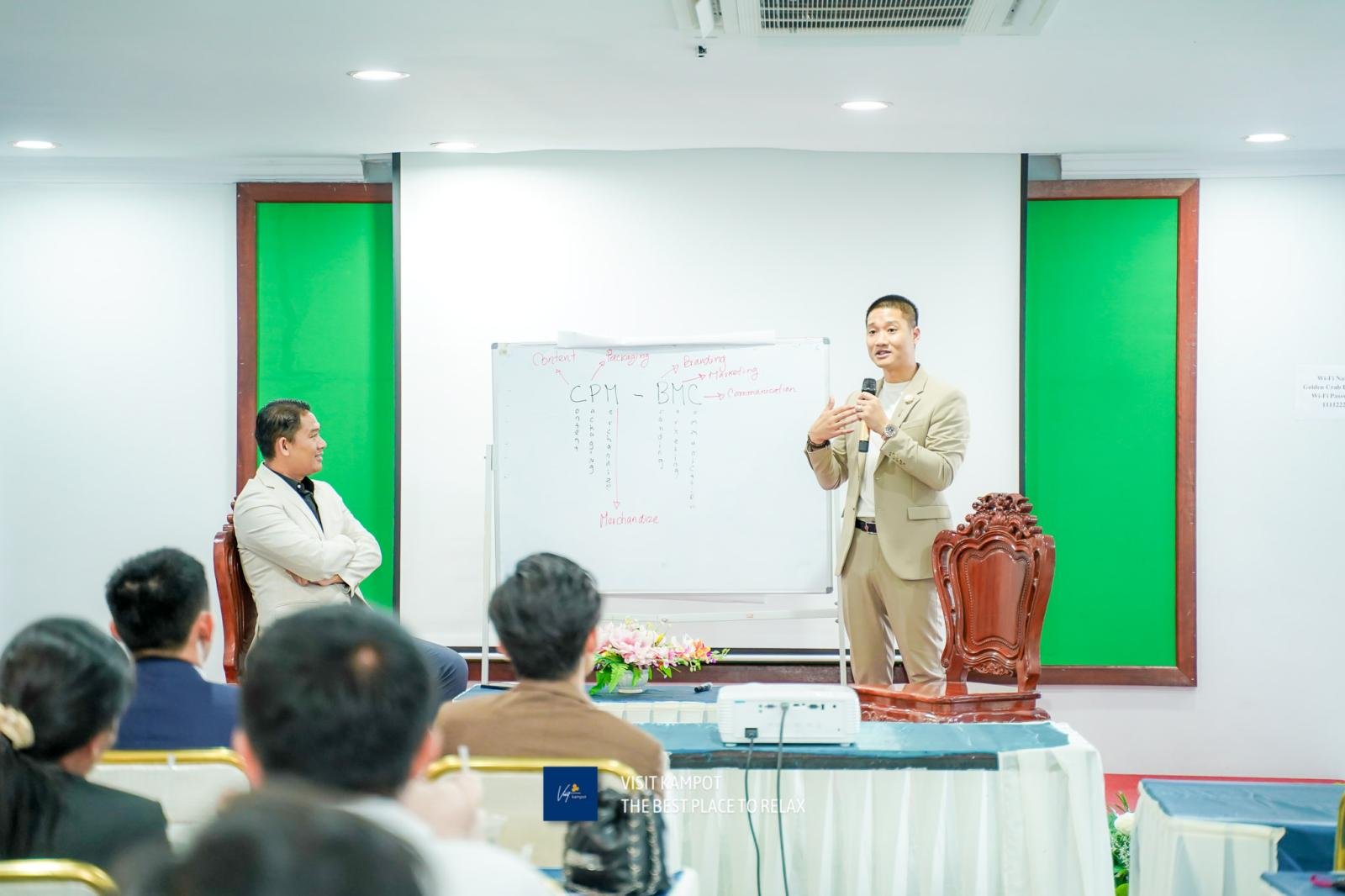 នាព្រឹកថ្ងៃទី០១ ខែកុម្ភៈ ឆ្នាំ២០២៤ សមាគមសហគ្រិនវ័យក្មេងកម្ពុជាសាខាកំពត-កែប បានរៀបចំកម្មវិធី “ជំនួបសហគ្រិនវ័យក្មេង និងអាជីវករ ខេត្តកំពត និងកែប លើកទី២" ក្រោមប្រធានបទ «បើក ឬ អត់? បិទ ឬ បន្ត?» ដោយមានការចូលរួមពីវាគ្មិនកិត្តិយស ឧកញ៉ា ឃន ឈុនដារ៉ា CEO of KOI The និងលោក ឃឹម ប៊ុនឡែន ប្រធានសមាគមសហគ្រិនវ័យក្មេងកម្ពុជា សាខាកំពត-កែប ព្រមទាំងសហគ្រិន អាជីវករ និងក្រុមការងារពាក់ព័ន្ធសរុបប្រមាណជាង ៦០នាក់ នៅសណ្ឋាគារ Golden Crab Boutique ខេត្តកំពត។