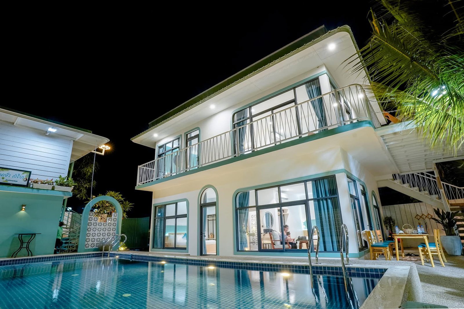 សម្រាប់នៅខាងក្នុងផ្ទះគឺមានបន្ទប់ចំនួន 3ធំៗអាចគេងបានចាប់ពី10ទៅ12នាក់។ បន្ទប់ទី១ ជាបន្ទប់លក្ខណ:គ្រួសារមានគ្រែចំនួនពីរ និងកន្លែងទទួលភ្ញៀវ ជាប់អាងហែលទឹក ចំណែកបន្ទប់ទី២ និងបន្ទប់ទី៣ គឺមានគ្រែចំនួន១ដូចគ្នា។