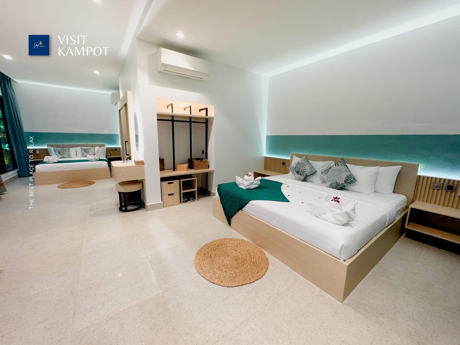 សម្រាប់គ្រែនៅក្នុងបន្ទប់មានទំហំធំប្រវែង២ម៉ែត្រ គុណនិង២ម៉ែត្រ ហើយអាចថែម Extra Bed តាមតម្រូវការរបស់អ្នកទាំងអស់គ្នាបាន ឬអាចជ្រើសជាលក្ខណ:បោះតង់នៅជាប់មាត់ទឹកក៏បានផងដែរ។ នៅតាមបន្ទប់នីមួយៗមានបន្ទប់ទឹកស្រាប់តែម្តង មានបំពាក់ម៉ាស៊ីនទឹកក្តៅទឹកត្រជាក់ និងមានបន្ទប់ទឹកនៅខាងក្រៅផ្ទះចំនួន២ថែមទៀត។